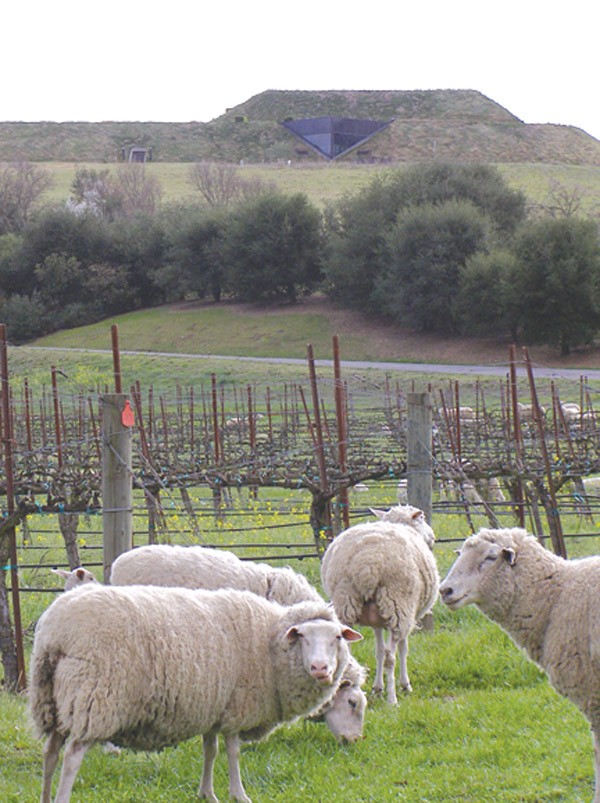 Yet another treeless hilltop amid a sea of similar hilltops, this one doesn’t stand out much, until you turn into the drive. Above a vineyard teeming with spring lambs, Artesa is sculpted into the earth like some ancient Briton hill fort, while a flight of steps leading to the visitor center—robed in native grass, pierced with obsidian-black glass—evokes a Mayan temple. The really striking, and strangely vertiginous, sight awaits upon the last step: a long pool of darkened water that appears bottomless, yet floating in air, far above Napa Valley and the San Pablo Bay.