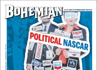Eighteen life-size politicians have assembled in San Jose on the first day of the state's Democratic Party convention in late February, and they all...