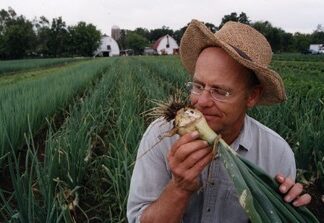 Leek Repair: Farmer John Peterson smells the organic produce on his revamped organic farm. Dishing the Dirt ...