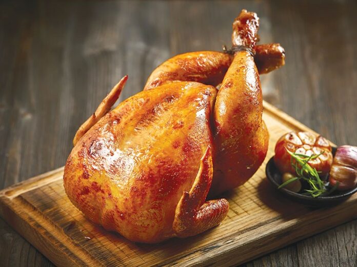 Then it’s into a 375 degree oven for 60 minutes or so until the skin is beautifully browned and it feels like you can pull off a leg without too much trouble.