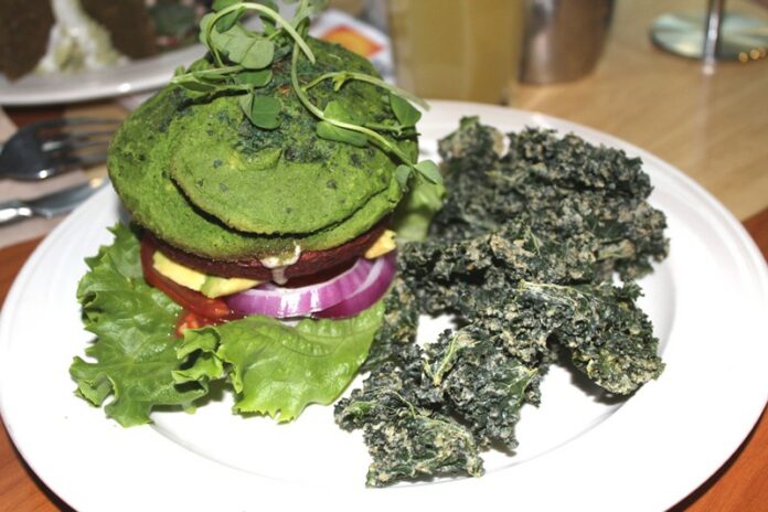 Another popular item is Sunflower’s burger patty. This cooked item isn’t trying to fool anyone: “I’m not meat,” it screams, with its red, mushy texture and burst of earthy flavors, “but you’re gonna love me just the same.” Made with quinoa, carrots, beets, celery, kale, parsley, basil, herbs and sesame, sunflower and pumpkin seeds, it’s extremely flavorful and soft, with a consistency between hearty paste and moist cake. The Super Burger ($9) comes with the patty, avocado and cashew “cheez,” which is far better than it sounds. It’s available on a house-made bun or a large, bright green buffkin ($2.50), made of spinach, kale, parsley, sprouted brown rice flour and coconut and sunflower oils. The buffkin serves not only as a light, fluffy, chlorophyll-packed way to contain the wall-to-wall health-fest within but also as an easy way to eat more nutrient-rich greens.