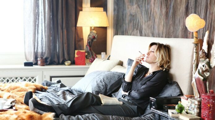 The young Bernaschi prince, Massimiliano (Guglielmo Pinelli), is the kind of entitled young jerk who artfully defaces his shiny SUV with camouflage patches and a “Fuck You” sticker on the back. But as Virzi weaves the story, we learn that we don’t really know what’s going on. We need to pay more attention to the sad-eyed, throaty-voiced lady of the manor, Carla (Valeria Bruni Tedeschi), who’s in a state of emotional cachexia over smothered artistic ambitions.