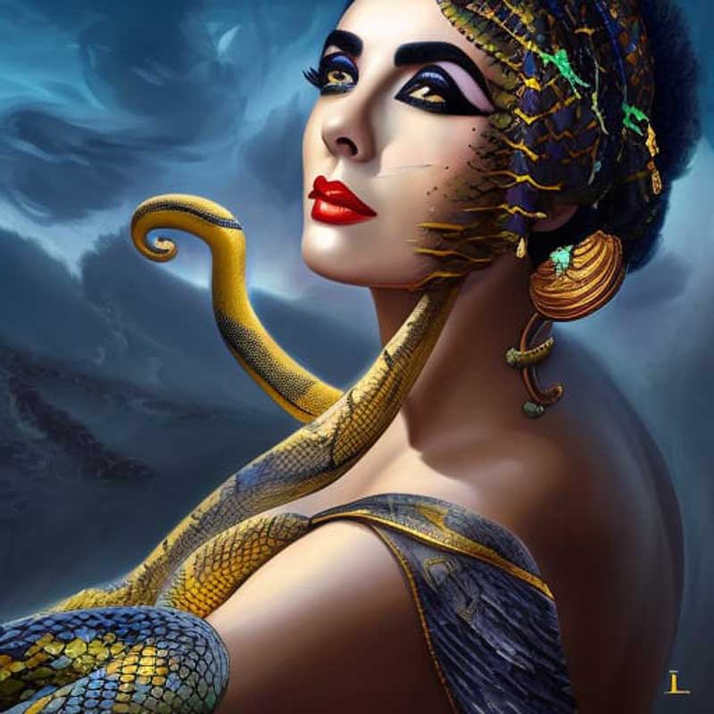 Cleopata’s earthly life as an embodied ego was torn between romantic passions and clashing empires, all of which went the way of sand and dust. But before the writhing asp—fitting symbol of the primordial serpent of the life force—sunk its fangs into her body to release her soul, she was able to waken from her earthly dream and snatch a glimpse of the true empire of light, where the queen of the Nile would go after closing her eyes and crossing the wide river.
