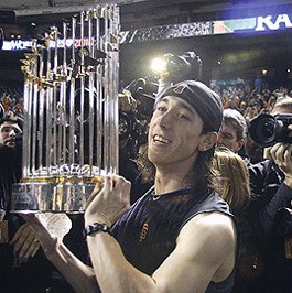I’m not talking about the Chilean miners’ rescue. I’m talking about the San Francisco Giants’ return to AT&T Park at 4am, after winning the World Series in Texas. The huge crowd, up all night waiting for their arrival. The high-fives between players and fans. And the most iconic image of all: Giants’ manager Bruce Bochy reaching over the barricades and Brian Sabean offering the World Series trophy for all to see.
