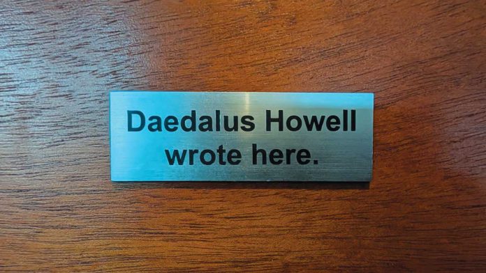 Writers like to leave a mark. Literally, figuratively and sometimes on a small engraved plaque at a local wine bar.