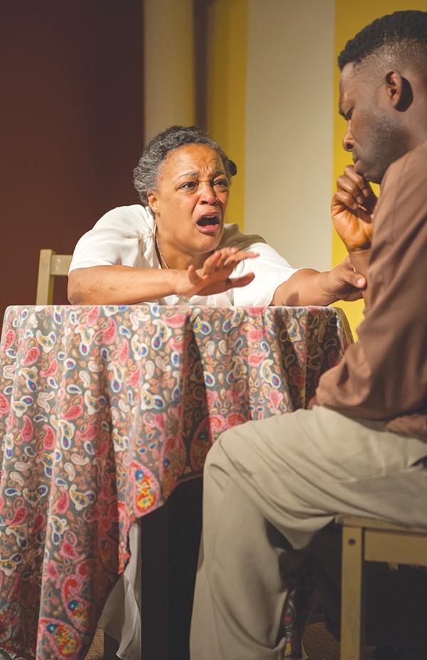 In James Baldwin’s marvelous Amen Corner (AlterTheater), Gospel music underscores the roiling emotions lurking beneath the surface of a small storefront church in Harlem in 1953. Directed with strong attention to emotional detail by Jeanette Harrison, this production unfolds, with minimal props and set pieces, in a cramped corner of the Body Kinetics health club, lending an appropriate sense of urban place to the story.