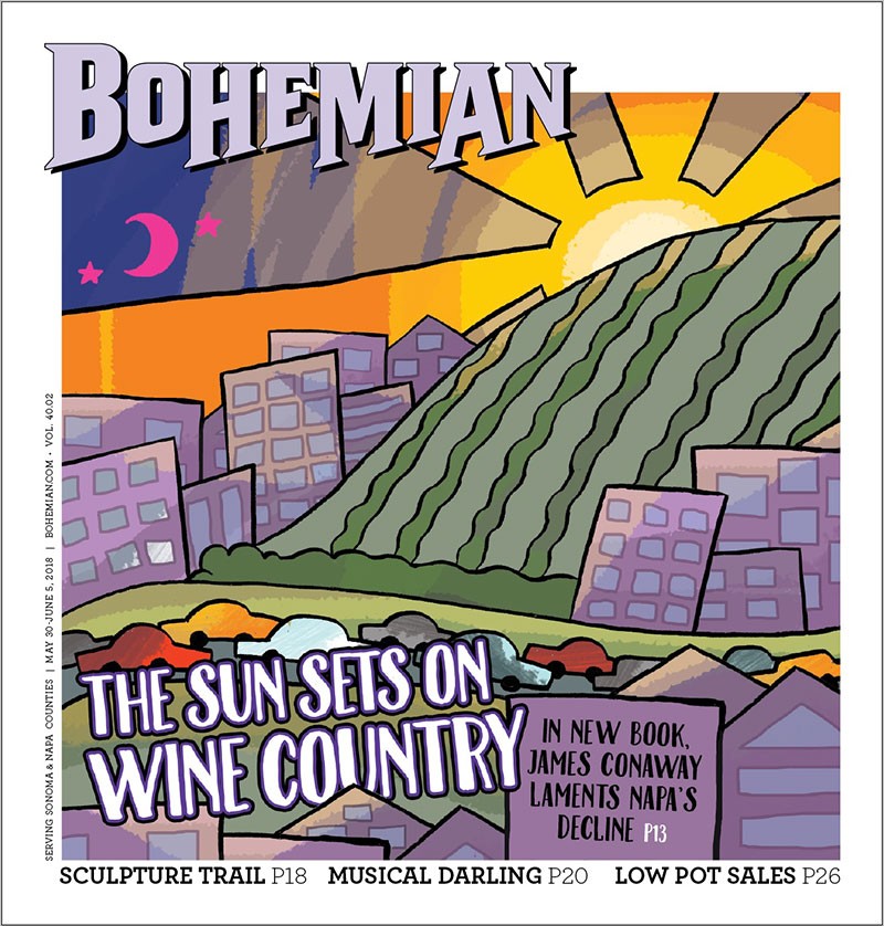 James Conaway’s muckraking tour de force Napa at Last light: America’s Eden in an Age of Calamity recounts the secrets, the backroom deals and the hillside devastation that has shocked citizens and persuaded some winemakers and grape growers to call for reform. The book arrived in stores in March, three months before the June 5 ballot on Measure C. Widely read, it has strengthened the pro-C forces, though it has also helped fuel the anti-C folks. Where Conaway’s books are concerned, there’s no neutrality. Indeed, his words can be intoxicating, especially when he writes about wine as the beverage that “sustains kings, poets, politicians, priests, lovers, idealists, the sick, the stricken, and all manner of rascals.”