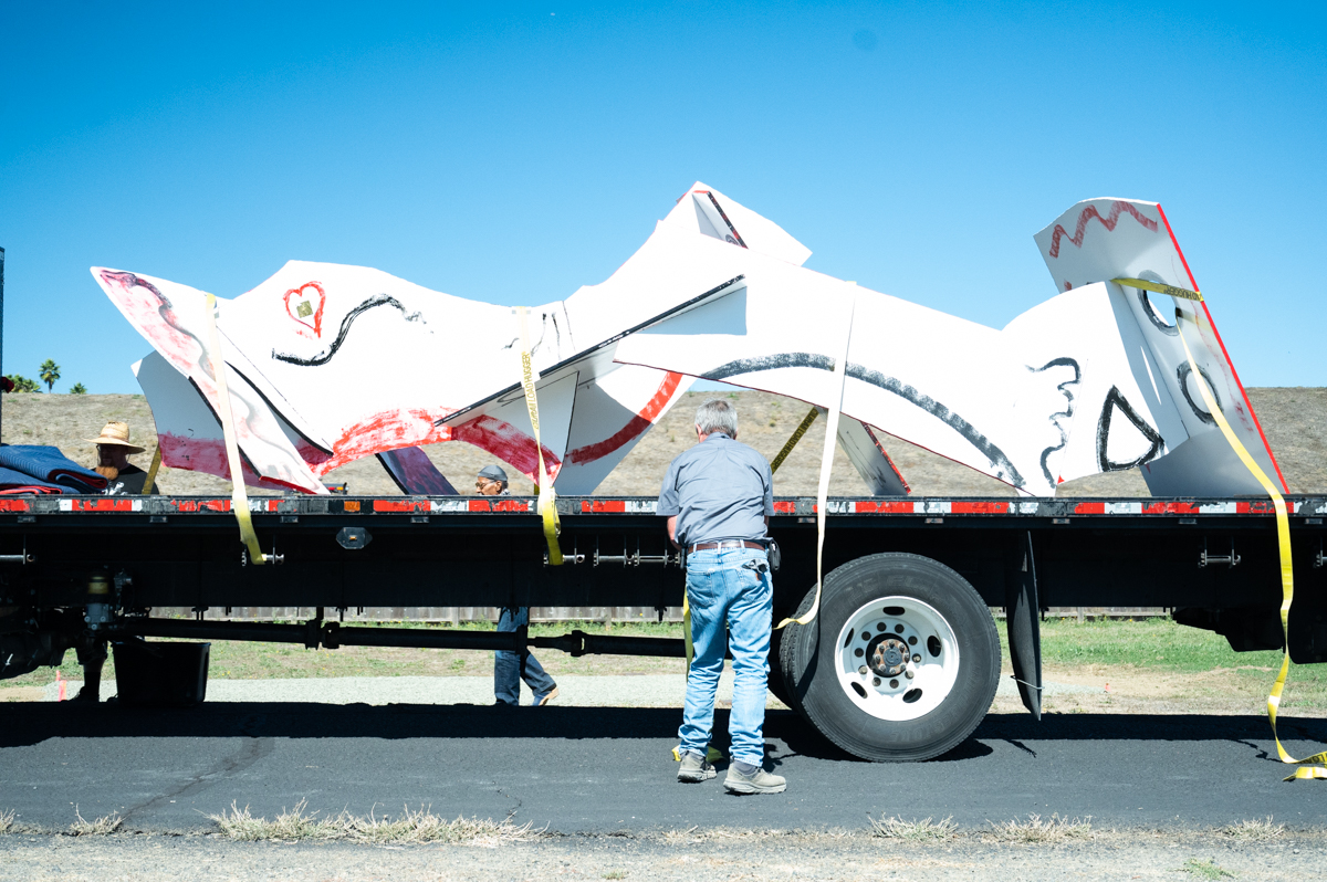 The construction was no small feat. Created together with a team that included Diane Roby—Jackson’s agent, assistant and all-around right hand—Erik Rosin and the crew at Capitol Iron Works in Sacramento, fabrication to installment was a month of work, resulting in a three-ton sculpture comprised of three one-inch tempered steel plates, notched together, painted with protective paints and measuring six feet tall by eight feet wide by 20 feet long.