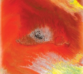 Visual art hadn’t much crossed his mind until his longtime drum tech Lawrence “Ram Rod” Shurtliff died, and that’s when grief resulted in inspiration. A series of wood sculptures followed, with some watercolor gouache for good measure. Art shows followed. But Hart wasn’t done yet. Now pouring paint à la Jackson Pollock (detail from The Foot of God, above), Hart’s newest works elicit what he calls “the wonder of chaos and the flow—all the glorious symmetry in one.”