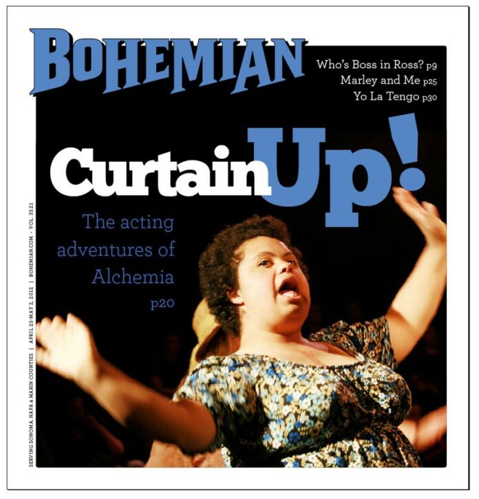 Liz Jahren, program director of the Alchemia Theater for Life in Santa Rosa, gently guides an actor to her correct mark, then heads back to her seat, stopping to shove a black wooden box a few feet nearer to the center of the rehearsal room. All around her, 22 slightly nervous performers are finding their places. “Erica has to leave in half-an-hour,” Jahren reminds the cast, “so we have to stay really focused, right? We’re starting from where we left off at break-time, the first bully scene, right after Possibility.”