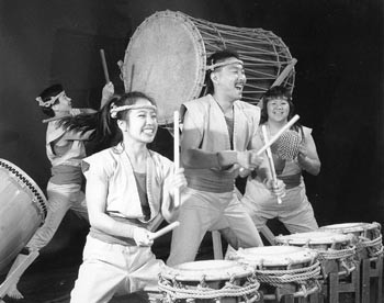 “When I first saw taiko,” he recalls, “it was a very moving experience for me. It was at my local community Buddhist center, at the summer festival, what we call the Obon Festival, and there was this one man there who always came to play taiko for the dancing that happened at the festival. I was very moved to discover an art form that was intrinsically Japanese, but that could be translated into a distinctly American cultural thing at the same time.”