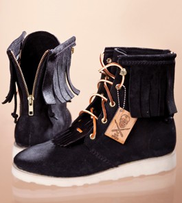 “I want to create something that’s high-quality and fits comfortably,” Chambrone explains, describing how he retrofits sneakers with an industrial sewing machine given to him by his father, using everything from leather to stingray to Swarovski crystals (another Bieber commission). He’s created a pair of fuchsia hightops for the L.A. based company Android Homme, which were worn at the MTV Video Music Awards by the Black Eyed Peas’ will.i.am, and filled orders for Miami rapper Rick Ross.