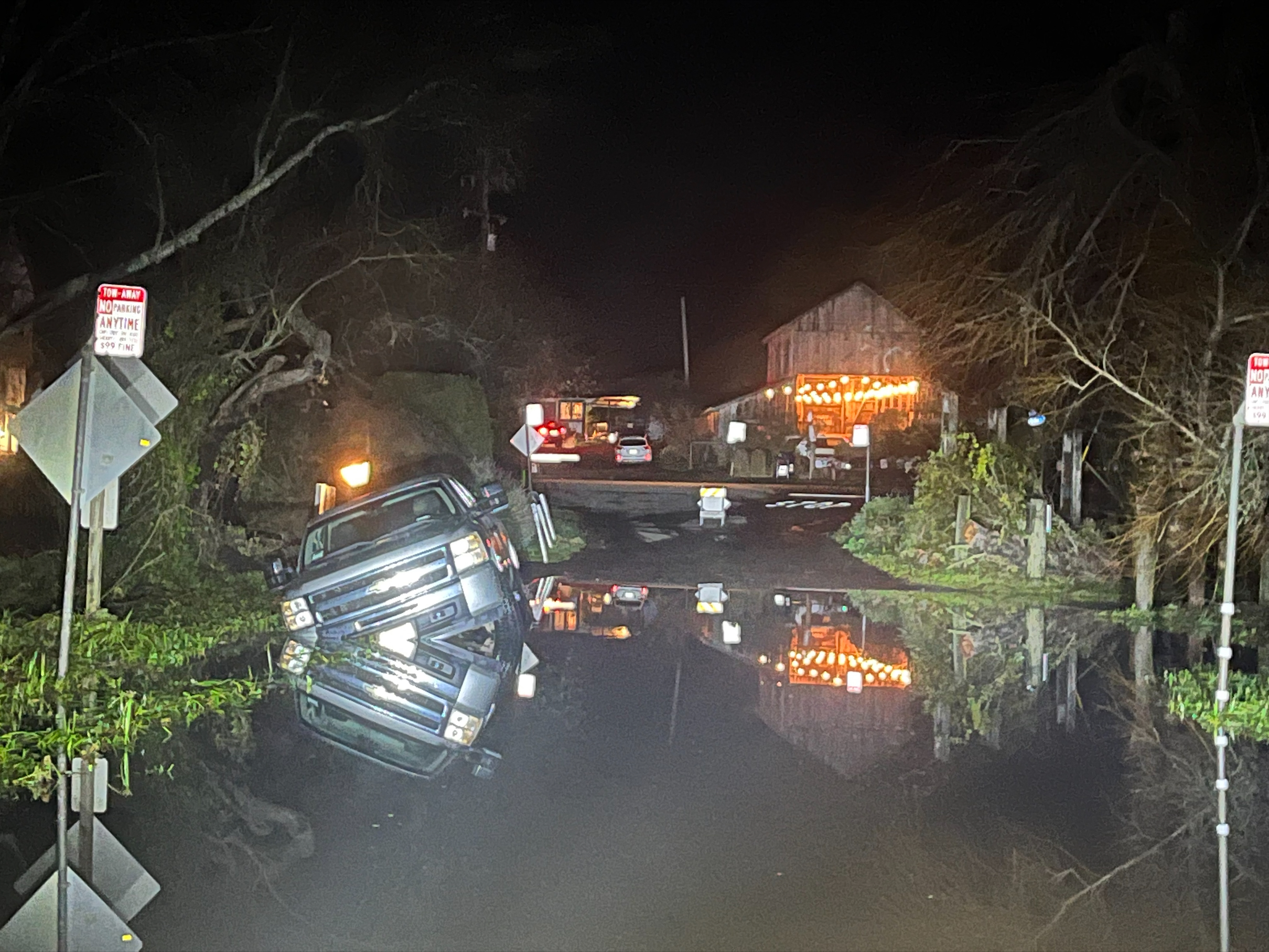 A driving miscalculation landed Berman’s truck stuck in the mud on the side of the road, tipping precariously, with the water continuing to rise ever so slightly.