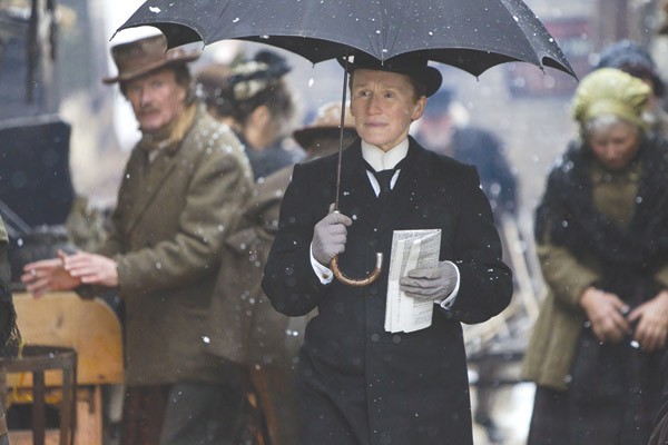 Close’s portrait of a bound-in woman is the kind of sad the viewer can admire rather than feel. Maybe wearing a derby tempts an actor to try earnestly to emulate the wistful Chaplin. But as moviegoers, we’re trained to admire proactive indecent characters, so we keep wanting to see more of McTeer as Nobbs’ acquaintance, a laborer, also a male impersonator, who has managed to successfully live as a man.