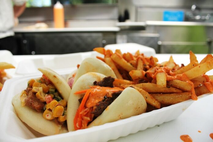 Turns out, the leap from Chicago-style hot dog to Chinese-inspired pork bun is relatively small. Tyler’s latest wheeled endeavor is the Bun Slinger, a converted taco truck that owes its name to the creative mind of his nine-year-old daughter, Sydney.